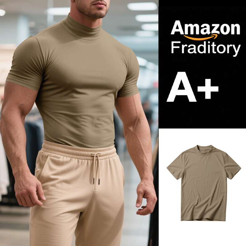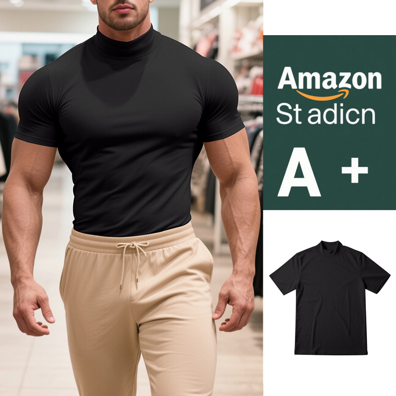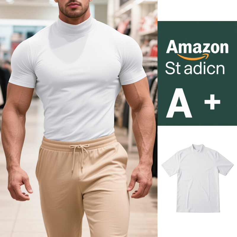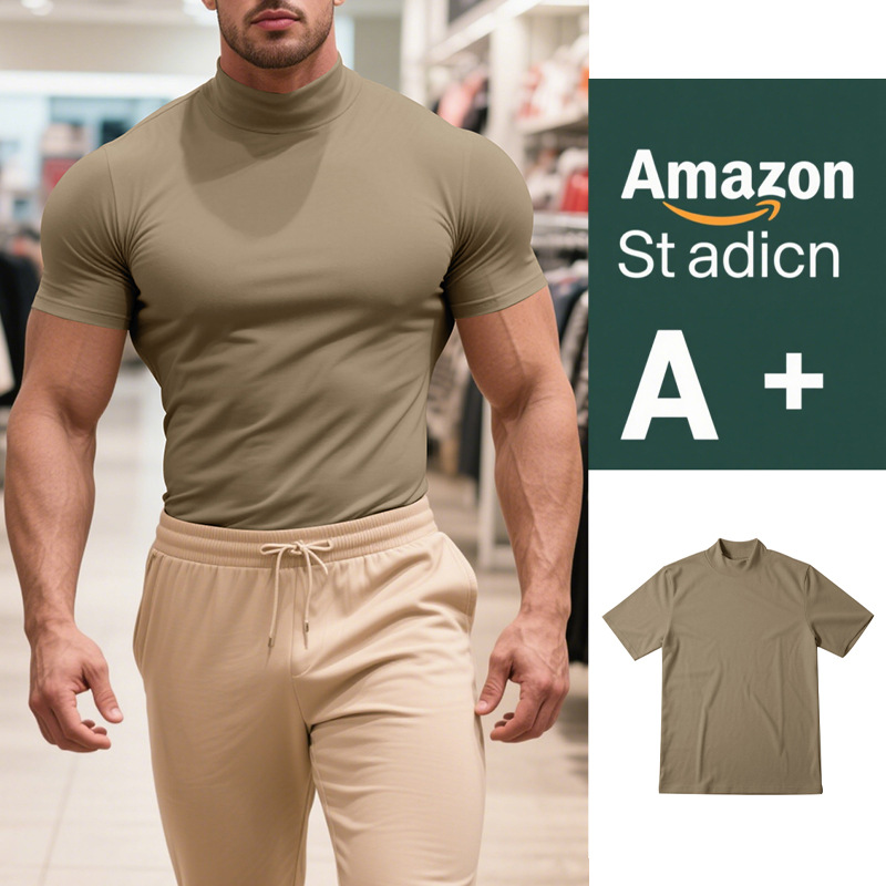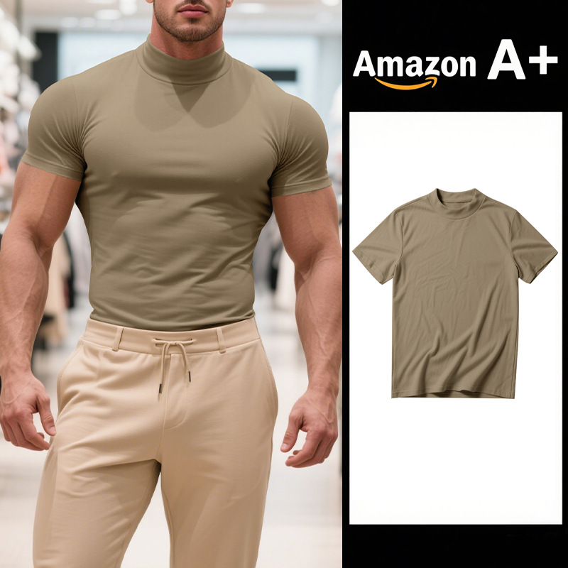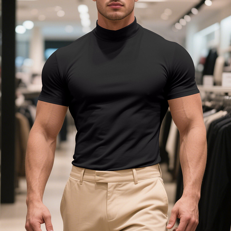 British Style Men's T-Shirt – Slim Fit High Neck Casual Top