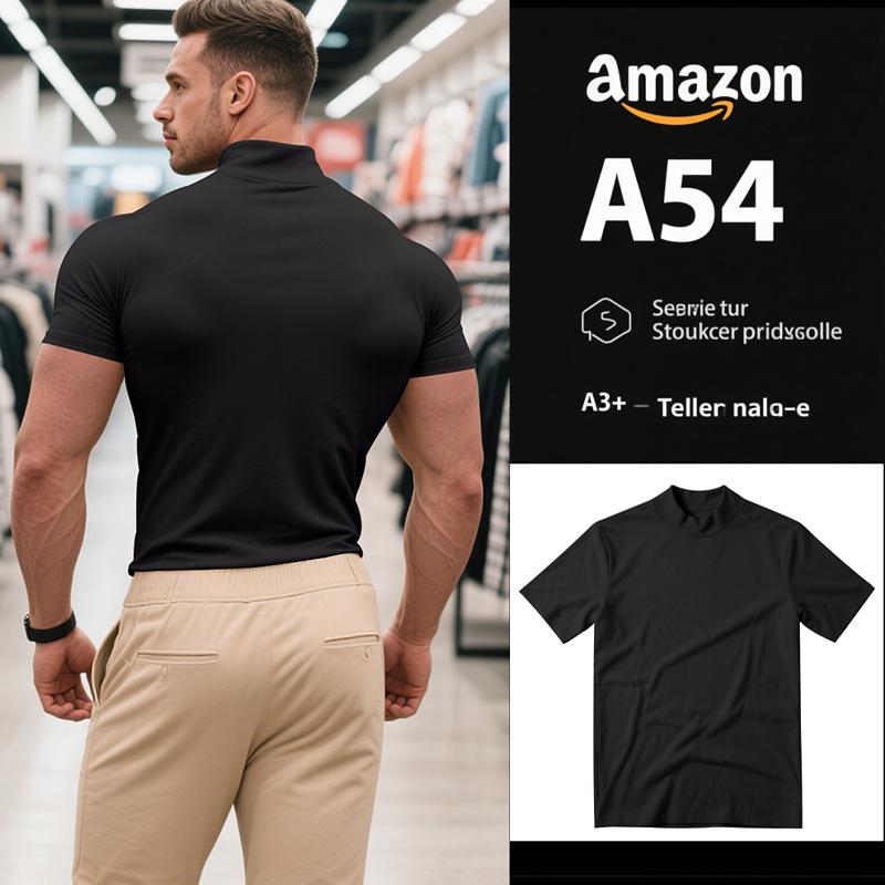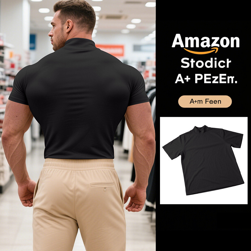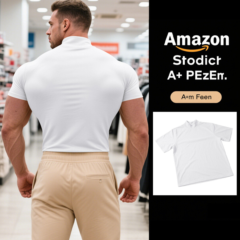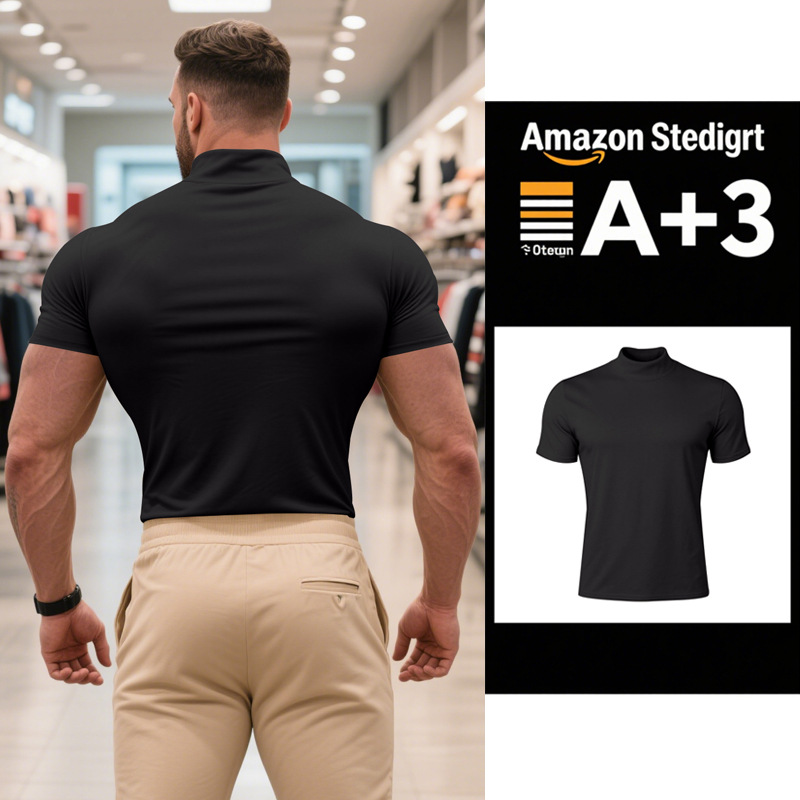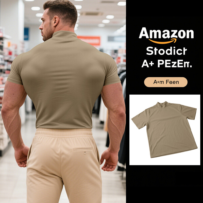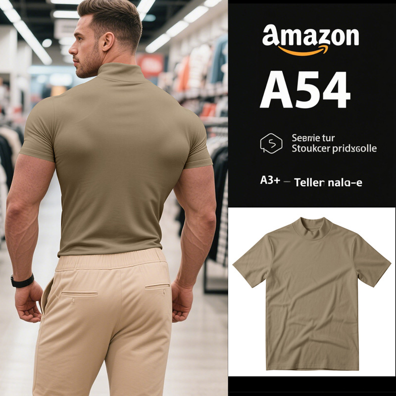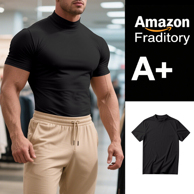 British Style Men's T-Shirt – Slim Fit High Neck Casual Top