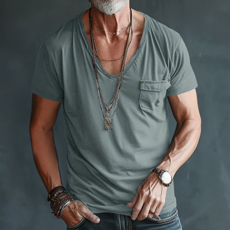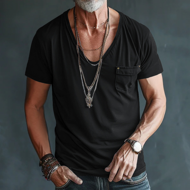 Men's V-Neck Pocket T-Shirt – Plus Size Casual Wear